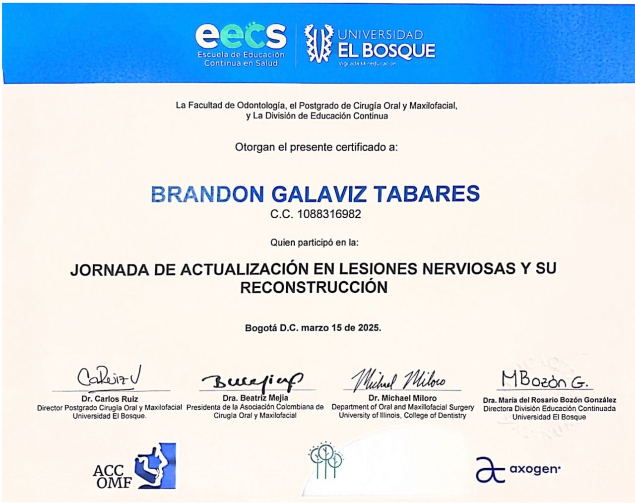 Cirujano oral y maxilofacial, capacitado para proporcionar manejos seguros y efectivos que mejoren la calidad de vida, proporcionando una atención personalizada y de alta calidad a mis pacientes desde un trato empatico, cercano y profesional.